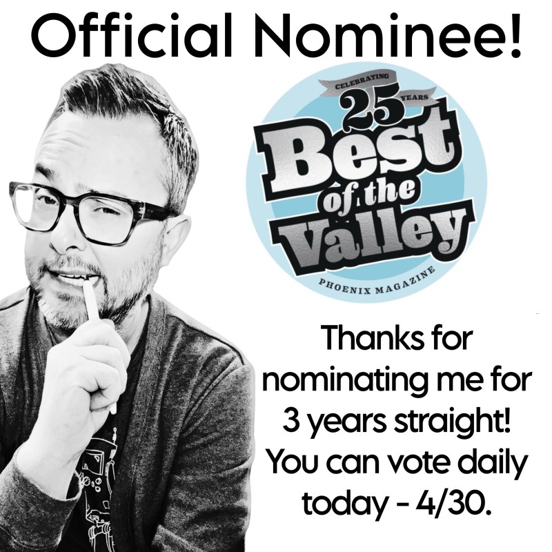 We have no idea how we are lucky to have made it into these events as vendors, but we’re thrilled we did. Check out all the upcoming events below. Also, there are only 5 days to vote for me for Phoenix Magazine’s Best of the Valley Reader’s Choice Author of the Year. You can vote once a day through 4/30. I hope you will take the time to do so. Winning this is huge for my writing and indie publishing company, Dead Star Press. Click the picture below to vote.