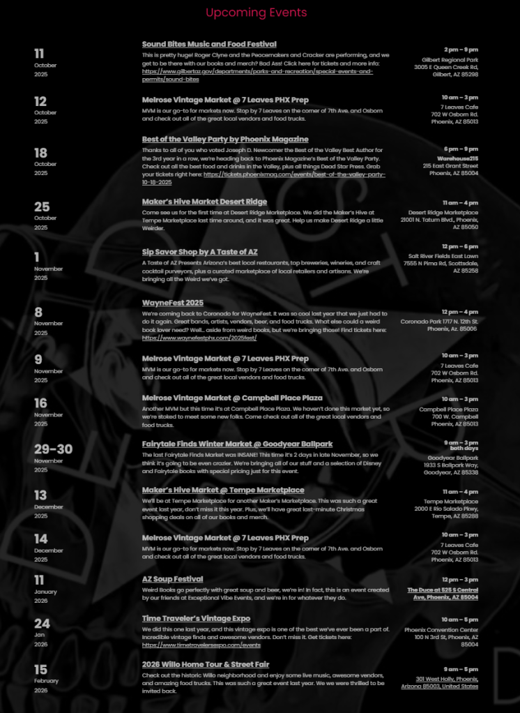 We’ve been extremely busy, and it’s not going to stop any time soon. We’re doing as many pop-up bookstore events as we can to raise the money to convert our truck into a bookstore on wheels. We’re also working on 3 new Dead Star Press titles. Here are all of the currently scheduled upcoming events. Click the images for more info.